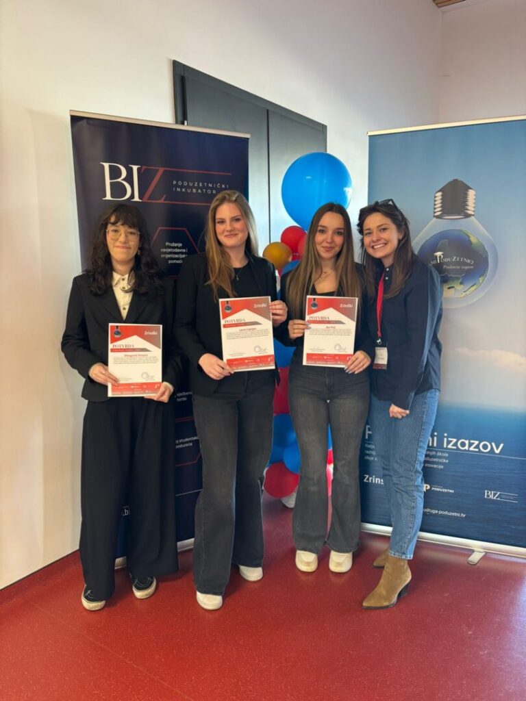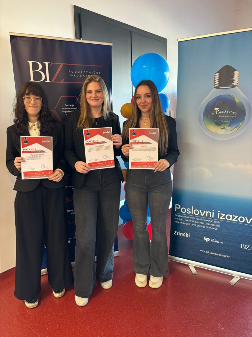 Naše predstavnice, Leona Ciprijan, Ana Prša i Margareta Pintarić, učenice 4. A, vrijedno su radile na svojoj poslovnoj ideji. Svojom inovativnošću, trudom i poduzetničkim duhom pokazale su da budućnost poduzetništva počinje već u školskim klupama.